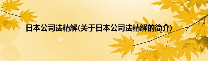 本文关于日本公司法精解的简介就讲解完毕,希望对大家有所帮助。