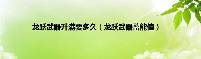 大家好,精选小编来为大家解答以上问题。龙跃武器升满要多久,龙跃武器蓄能值很多人还不知道,现在让我们一起来看看吧!