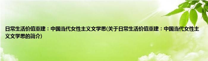 本文关于日常生活价值重建:中国当代女性主义文学思的简介就讲解完毕,希望对大家有所帮助。