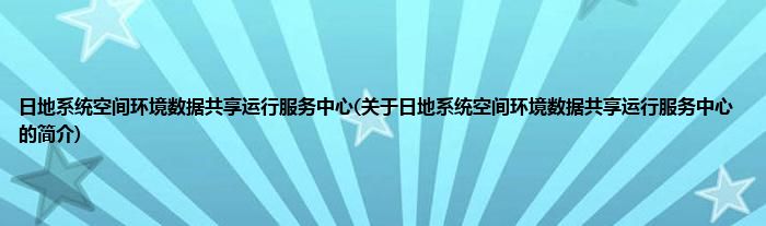 本文关于日地系统空间环境数据共享运行服务中心的简介就讲解完毕,希望对大家有所帮助。