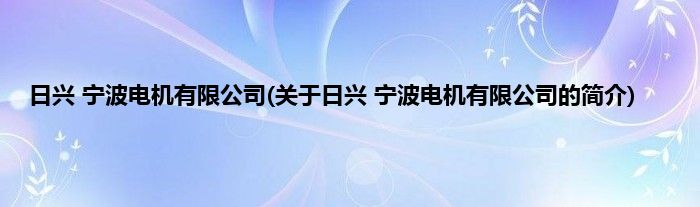 日兴 宁波电机有限公司(关于日兴 宁波电机有限公司的简介)