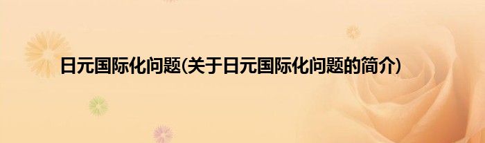 本文关于日元国际化问题的简介就讲解完毕,希望对大家有所帮助。