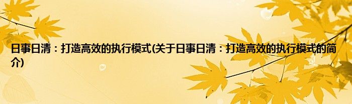 本文关于日事日清:打造高效的执行模式的简介就讲解完毕,希望对大家有所帮助。