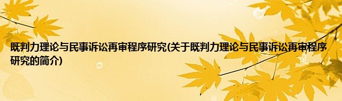 本文关于既判力理论与民事诉讼再审程序研究的简介就讲解完毕,希望对大家有所帮助。