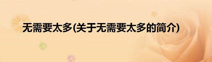 大家好,无需要太多,关于无需要太多的简介很多人还不知道,现在让我们一起来看看吧!