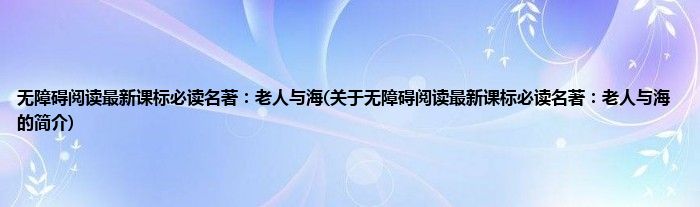 本文关于无障碍阅读最新课标必读名著:老人与海的简介就讲解完毕,希望对大家有所帮助。