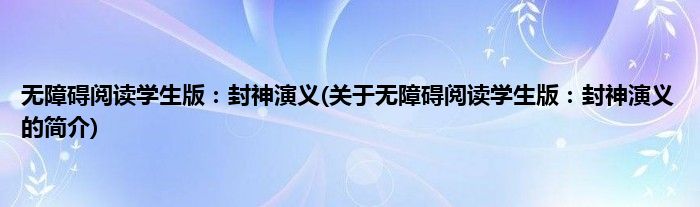1、 《无障碍阅读学生版:封神演义》是一部富有浪漫主义色彩的神魔小说。