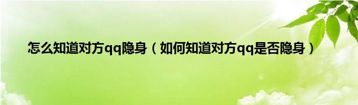 怎么知道对方qq隐身(如何知道对方qq是否隐身)