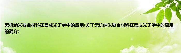 本文关于无机纳米复合材料在集成光子学中的应用的简介就讲解完毕,希望对大家有所帮助。