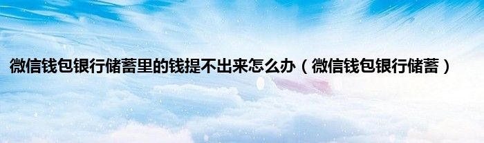 大家好,精选小编来为大家解答以上问题。微信钱包银行储蓄里的钱提不出来怎么办,微信钱包银行储蓄很多人还不知道,现在让我们一起来看看吧!