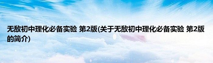 大家好,无敌初中理化必备实验 第2版,关于无敌初中理化必备实验 第2版的简介很多人还不知道,现在让我们一起来看看吧!