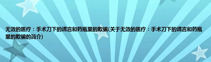 本文关于无效的医疗:手术刀下的谎言和药瓶里的欺骗的简介就讲解完毕,希望对大家有所帮助。