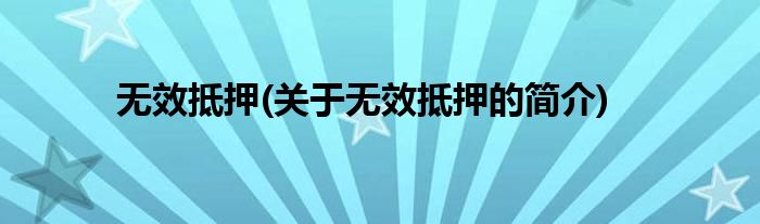 本文关于无效抵押的简介就讲解完毕,希望对大家有所帮助。