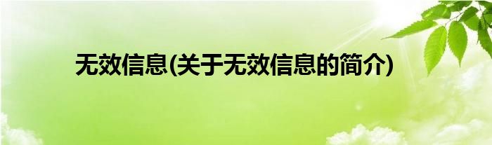 本文关于无效信息的简介就讲解完毕,希望对大家有所帮助。