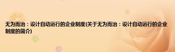 本文关于无为而治:设计自动运行的企业制度的简介就讲解完毕,希望对大家有所帮助。
