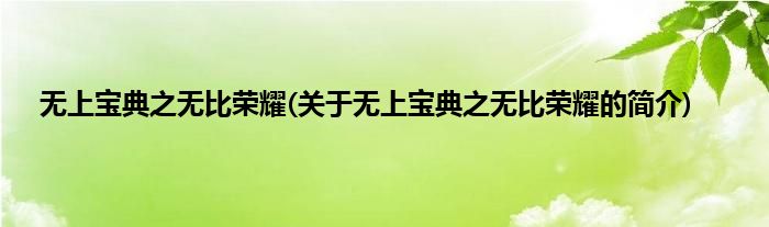 本文关于无上宝典之无比荣耀的简介就讲解完毕,希望对大家有所帮助。