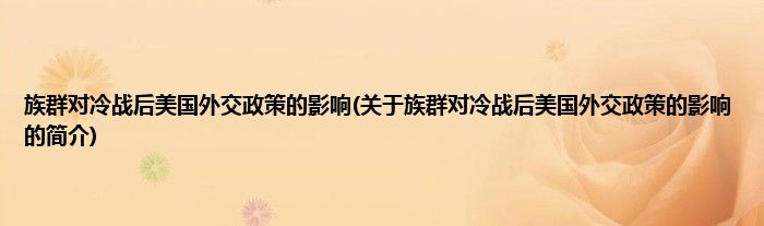 本文关于族群对冷战后美国外交政策的影响的简介就讲解完毕,希望对大家有所帮助。