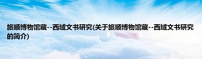 大家好,旅顺博物馆藏--西域文书研究,关于旅顺博物馆藏--西域文书研究的简介很多人还不知道,现在让我们一起来看看吧!