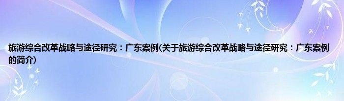 本文关于旅游综合改革战略与途径研究:广东案例的简介就讲解完毕,希望对大家有所帮助。