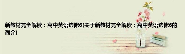 本文关于新教材完全解读:高中英语选修6的简介就讲解完毕,希望对大家有所帮助。