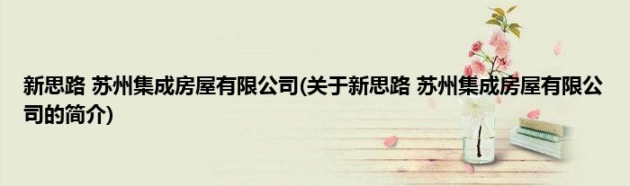 本文关于新思路 苏州集成房屋有限公司的简介就讲解完毕,希望对大家有所帮助。