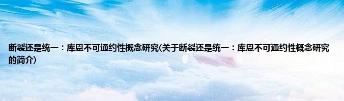 断裂还是统一:库恩不可通约性概念研究(关于断裂还是统一:库恩不可通约性概念研究的简介)