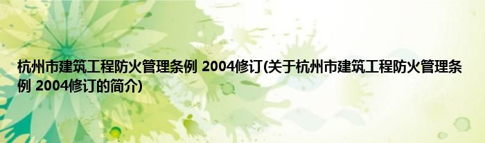 杭州市建筑工程防火管理条例 2004修订(关于杭州市建筑工程防火管理条例 2004修订的简介)