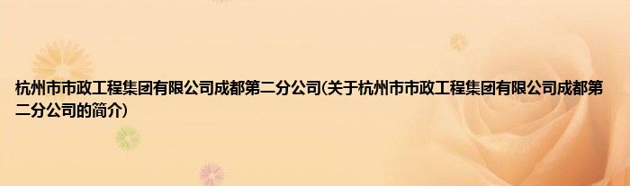 大家好,杭州市市政工程集团有限公司成都第二分公司,关于杭州市市政工程集团有限公司成都第二分公司的简介很多人还不知道,现在让我们一起来看看吧!
