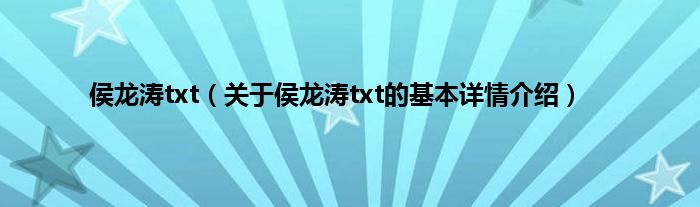 本文关于侯龙涛txt的基本详情介绍就讲解完毕,希望对大家有所帮助。