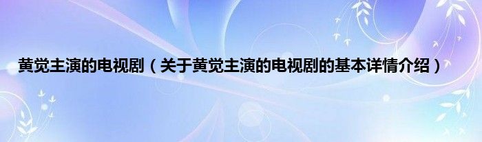 本文关于黄觉主演的电视剧的基本详情介绍就讲解完毕,希望对大家有所帮助。