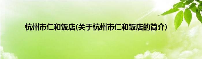 本文关于杭州市仁和饭店的简介就讲解完毕,希望对大家有所帮助。