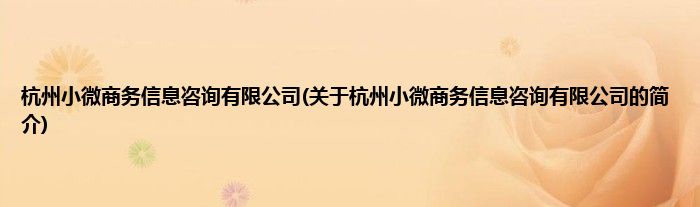 本文关于杭州小微商务信息咨询有限公司的简介就讲解完毕,希望对大家有所帮助。