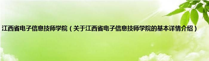 本文关于江西省电子信息技师学院的基本详情介绍就讲解完毕,希望对大家有所帮助。