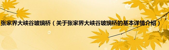 本文关于张家界大峡谷玻璃桥的基本详情介绍就讲解完毕,希望对大家有所帮助。