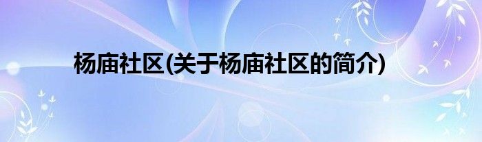 大家好,杨庙社区,关于杨庙社区的简介很多人还不知道,现在让我们一起来看看吧!