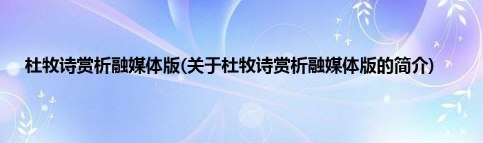 本文关于杜牧诗赏析融媒体版的简介就讲解完毕,希望对大家有所帮助。