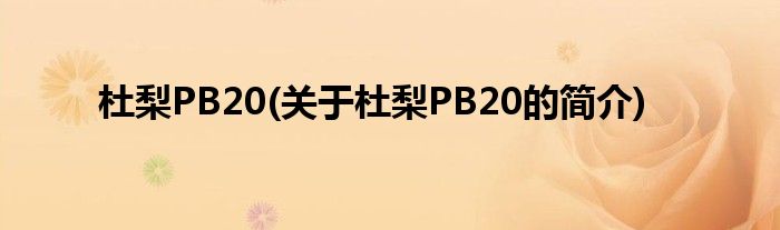 大家好,杜梨PB20,关于杜梨PB20的简介很多人还不知道,现在让我们一起来看看吧!