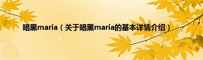 暗黑maria(关于暗黑maria的基本详情介绍)