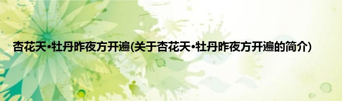 大家好,杏花天·牡丹昨夜方开遍,关于杏花天·牡丹昨夜方开遍的简介很多人还不知道,现在让我们一起来看看吧!