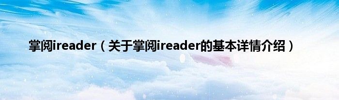 本文关于掌阅ireader的基本详情介绍就讲解完毕,希望对大家有所帮助。