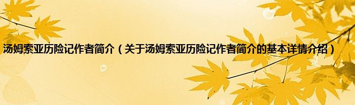 本文关于汤姆索亚历险记作者简介的基本详情介绍就讲解完毕,希望对大家有所帮助。