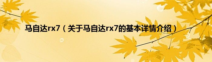 本文关于马自达rx7的基本详情介绍就讲解完毕,希望对大家有所帮助。
