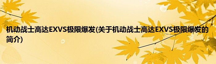 大家好,机动战士高达EXVS极限爆发,关于机动战士高达EXVS极限爆发的简介很多人还不知道,现在让我们一起来看看吧!