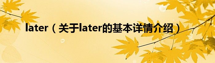 本文关于later的基本详情介绍就讲解完毕,希望对大家有所帮助。