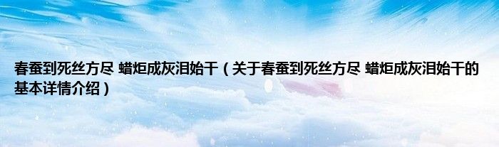 本文关于春蚕到死丝方尽 蜡炬成灰泪始干的基本详情介绍就讲解完毕,希望对大家有所帮助。
