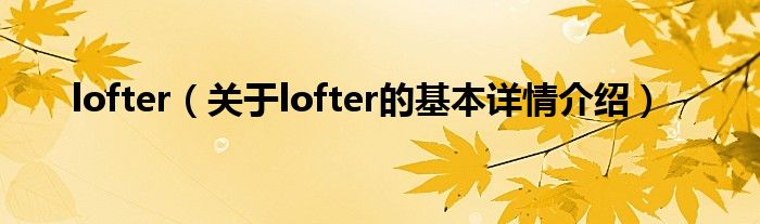 本文关于lofter的基本详情介绍就讲解完毕,希望对大家有所帮助。