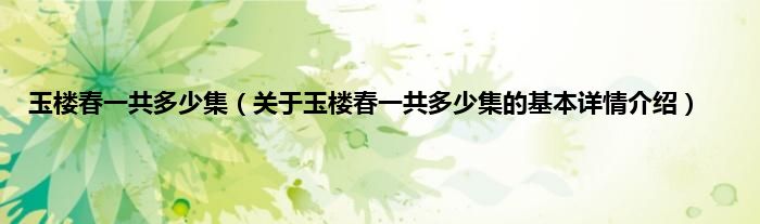 本文关于玉楼春一共多少集的基本详情介绍就讲解完毕,希望对大家有所帮助。