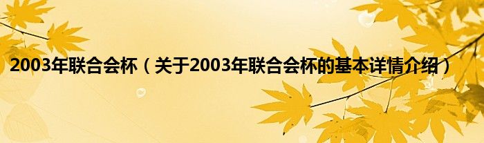 本文关于2003年联合会杯的基本详情介绍就讲解完毕,希望对大家有所帮助。