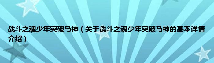 本文关于战斗之魂少年突破马神的基本详情介绍就讲解完毕,希望对大家有所帮助。