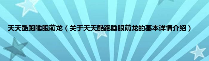 本文关于天天酷跑睡眼萌龙的基本详情介绍就讲解完毕,希望对大家有所帮助。